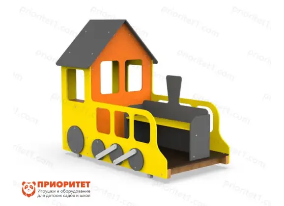- Яркий дизайн в виде желтого паровозика с домиком;