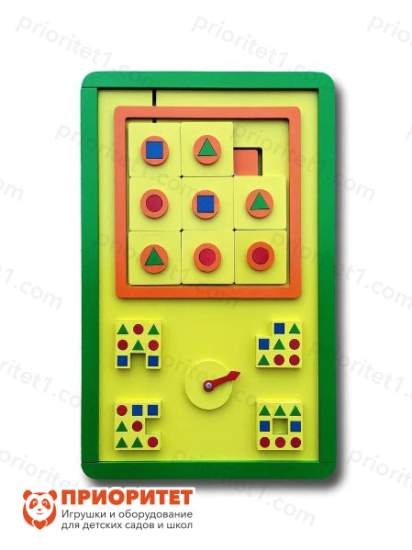 Игровой модуль «Внимательный ребенок» – это тренажер для развития внимательности и логики ребенка. На панели расположена логическая игра, в которой необходимо повторить рисунок из цветных деталей. Вместе с ней дети не только весело проведут время, но и повторят цветовую палитру и геометрические формы предметов.