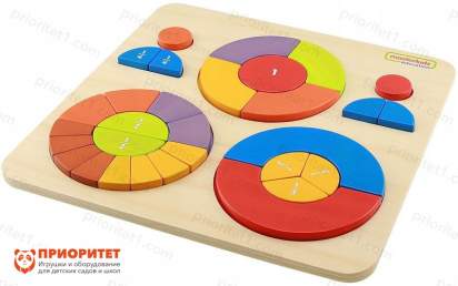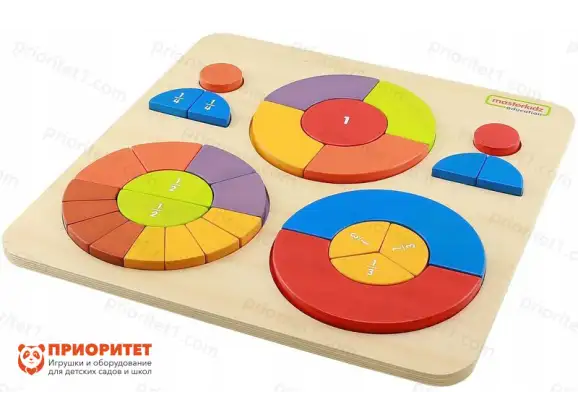 С помощью развивающего набора ребенок осваивает понятия «часть» и «целое», знакомится с дробями, геометрическими фигурами и разными вариантами их сочетаний.