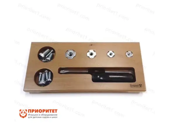Отвёртка — интересное развивающее пособие по методике Монтессори, созданная для детей в возрасте от 3 до 7 лет. Она чрезвычайно полезна для всестороннего развития ребёнка. Игрушка предназначена для детского сада, реабилитационного центра, студии раннего развития, начальной школы, творческого кружка, а также для домашних занятий.