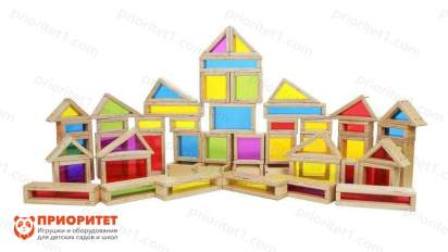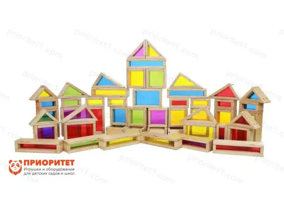 - В состав набора входит 51 деталь – деревянные геометрические фигурки разного цвета и формы.