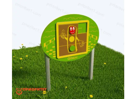 Данное развиваещее оборудование работает по принципу «пятнашек». На нем изображен светофор. Данный модуль позволяет не только развивать логику и мелкую моторику, но также наглядно изучать работу светофора.