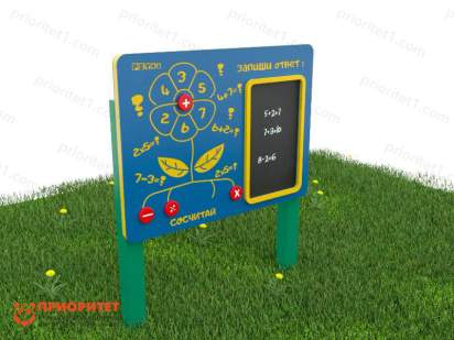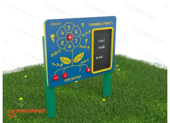 Модуль представляет собой стенд с элементами лабиринта и магнитно-меловой доской. С помощью бегунка дети смогут выбрать арифметическое действие для текущей игры. Например, выбрав жетон «умножение», они переместят его в центр цветка и составят примеры, используя цифры с лепестков. На магнитно-меловой доске можно записать пример и выполнить расчеты. Это способствует развитию мелкой моторики и графомоторных навыков. Юные математики смогут не только записывать примеры, но и решать их.