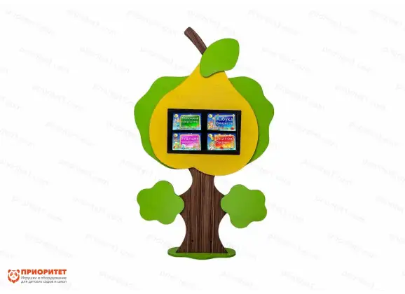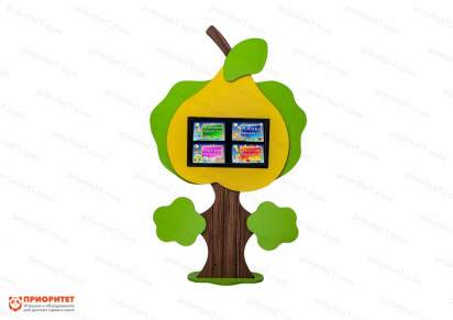 Панель яркая, разноцветная. Это груша, которая надежно располагается на дереве. Гаджет привлекает внимание, вызывает положительные эмоции.
