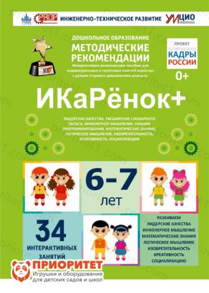 Комплект «ИкаРенок» представляет собой увлекательное пособие, которое включает в себя методические занятия по робототехнике. Процедура обучения является доступной для понимания, и маленькие дети воспринимают новую информацию с удовольствием. При этом знакомясь с новой информацией, они приобретают необходимые навыки. Рекомендуемый возраст детей составляет 7 лет. Процесс обучения состоит из 36 занятий, то есть можно построить обучающую программу таким образом, чтобы учитель мог давать одно занятие в неделю.