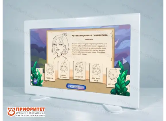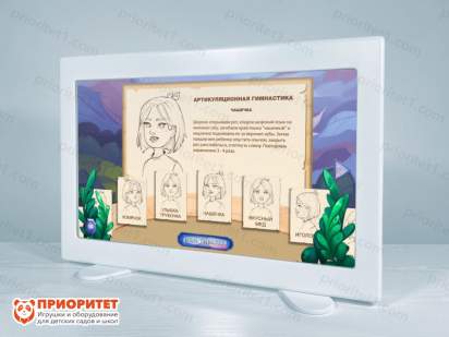 Интерактивный логопедический комплекс «Зазеркалье» представляет собой инструмент для логопедов для работы с детьми, имеющими проблемы с постановкой звуков. Он также отлично подойдет для проведения артикуляционной гимнастики. Чаще всего комплекс используется во время индивидуальных занятий. Его можно применять как дома, так и на специальных кружках и занятиях. В комплектацию входят все необходимые материалы, занятия и игры для проведения логопедом комплекса упражнений по постановке звука у ребенка. Поверхность комплекса представляет собой зеркало, которое дает возможность логопеду видеть, как ребенок правильно произносит слова и звуки. Это во многом упрощает работу преподавателя и повышает эффективность занятий. В процессе используются различные средства, что повышает интерес ребенка к занятиям.