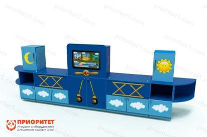 - Комплекс изготовлен из ламинированной ДСП, имеет размеры 1516 х 3111 х 500 мм, а все углы закруглены для предотвращения травмирования детей.