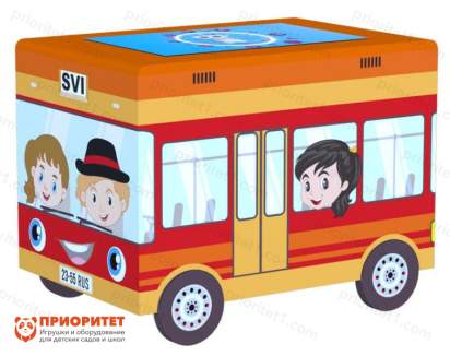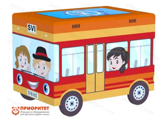 - Автобус. Форма стола подходит малышам, которые увлекаются транспортом. Знакомый предмет может пробудить в них интерес к столу и побудить их заниматься развитием памяти и логики.