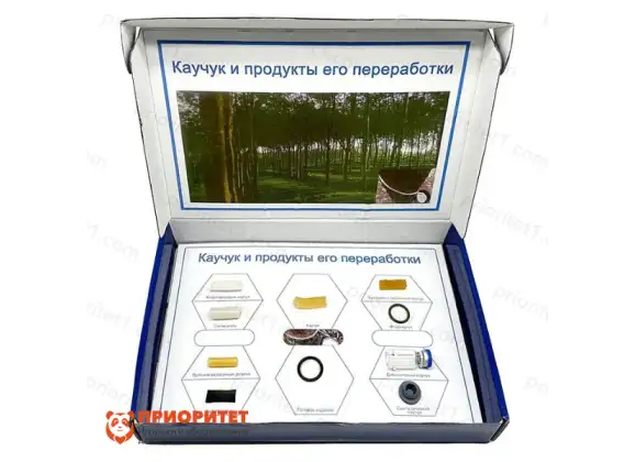 Коллекция включает образцы различных видов каучуков, которые различаются по эластичности, плотности, цвету и другим важным характеристикам. Все образцы аккуратно упакованы и готовы к демонстрации. В коллекции представлены как натуральные, так и синтетические виды каучуков, что позволяет проводить их сравнение по ключевым признакам, таким как текстура, упругость и другие свойства, важные для изучения на уроках химии.