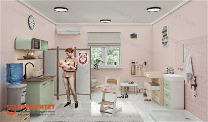 Комната матери и ребенка удобно разделена на несколько функциональных зон, каждая из которых играет свою важную роль в повседневной жизни.