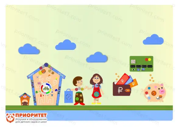 Комплексное настенное решение «Деньги и домашний бюджет» предназначено для обучения детей азам финансового семейного планирования. Играя и обучаясь, дети узнают: