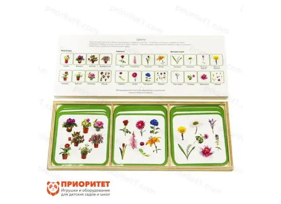 Комплект карточек Монтессори «Цветы» предназначен для обучения детей в возрасте от 3 лет. Использование карточек позволяет не только изучить названия и вид цветов, но и получить дополнительные более важные навыки.