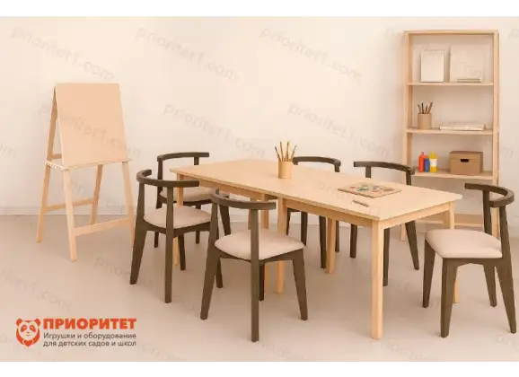 - 2 стола «Базис» — надёжные рабочие поверхности из фанеры, выдерживающие интенсивное использование и легко очищающиеся после занятий;
