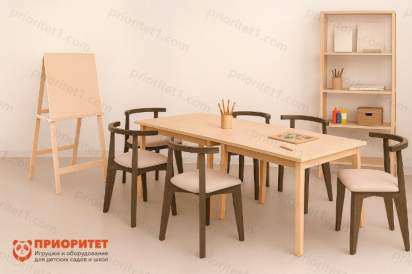 - 6 стульев «Контур» — эргономичные стулья из прочной фанеры с мягким сиденьем и изогнутой спинкой для комфортной посадки;