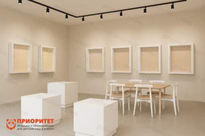 Музейный зал в современном минималистичном стиле — это готовый выставочный зал и экспозиционный зал, в котором продумано оформление выставочного зала и удобство для посетителей. Такой интерьер музея создаёт чистый фон для экспонатов и помогает выстроить понятную подачу: предметы не «теряются», а внимание концентрируется на содержании. Решение подойдёт как зал для выставки, а также как формат под ключ, когда нужно сразу получить оборудование для музея и базовую мебель для музея.