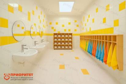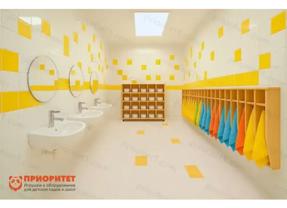 Комплект мебели для санузла «Ясельки» — практичное и удобное решение для организации санузла в ясельных группах. Полотенечницы и стеллаж для горшков помогают поддерживать порядок и формируют у детей гигиенические привычки – каждое полотенце и горшок имеют своё место, что учит малышей самостоятельности и порядку. Благодаря универсальному дизайну мебель органично впишется в любой интерьер.