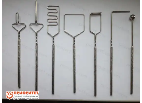 Набор состоит из 7 элементов, достаточных для постановки всех звуков. Набор выполнен из нержавеющей медицинской стали. Ручка антискользящая, удобная. Зонды можно и нужно дезинфицировать различными методами: автоклав, кипячение, обработка специальными средствами.