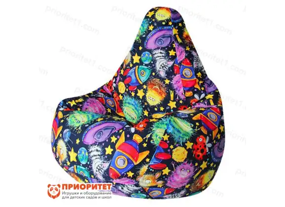 Пестрое велюровое кресло-груша с изображением веселых пришельцев, ракет и летающих тарелок станет источником бесконечной радости, местом полного релакса и уединения для подрастающего мальчика. Здесь можно читать, рисовать, учить уроки, играть на телефоне и выполнять массу других важных для ребенка дел. Родитель, который ищет возможность порадовать свое чадо, теперь точно знает, что делать.