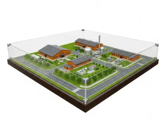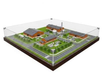 Уменьшенная настольная модель территории птицефабрики — учебный макет, который наглядно демонстрирует: