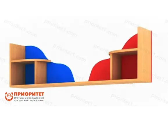Модуль является полкой для книг и игрушек. Над остальными элементами модуля можно повесить эту полку, чтобы хранить на ней те вещи, которые не поместились в шкаф и на кровать. Полка окрашена в яркие цвета, которые запомнятся ребёнку, и он захочет поставить на эту полку игрушки, начнёт уделять ей больше внимания. Краски, используемые для окрашивания полки, безопасны для ребёнка, они не содержат токсинов и не вызывают аллергии. Полка соединяется с другими частями сборной конструкции из данной серии.