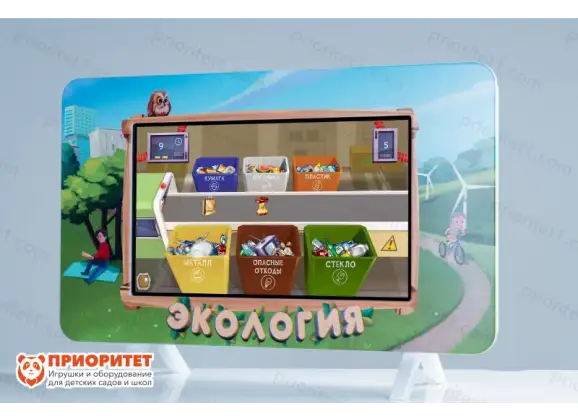 - Дидактическая игра по сортировке мусора. Комплект контейнеров для сортировки карточек с изображением типов мусора, карточки с изображением мусора – 60 шт.;