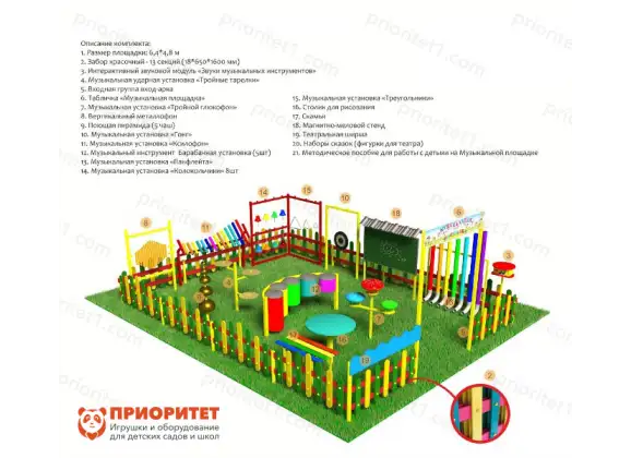Музыкальная площадка предоставляет особую возможность соприкоснуться с миром прекрасного. Поможет обозначить новые жизненные ориентиры. Если с детьми заниматься систематически и продуктивно, то эти усилия принесут свои плоды. Для детей от трех лет.