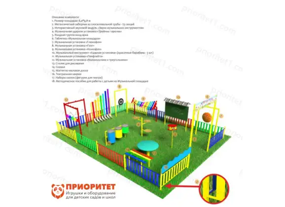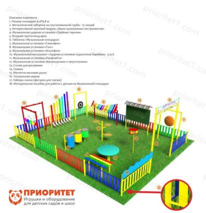 Данная музыкальная площадка как нельзя лучше подходит для развития познавательной активности ребенка. Занятия можно проводить как индивидуально, так и в группе. Стоит учитывать, что когда детей много, они начинают соревноваться за внимание взрослого и развлекательные ресурсы. Площадка предназначена для малышей от трех лет.