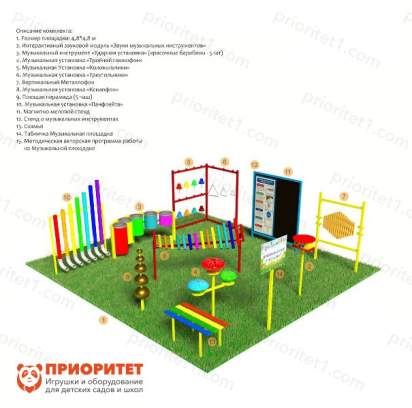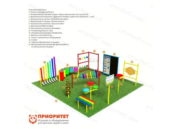 Музыкальная площадка – прекрасный способ заниматься на открытом воздухе с удовольствием. Это приспособление заключает в себе множество возможностей. Среди них – способность быстро анализировать информацию, сравнивать ее и делать выводы. Занятия станут интересными и наполненными яркими чувствами. Рекомендуется от трех лет. Подходит для всех возрастных групп детского сада.