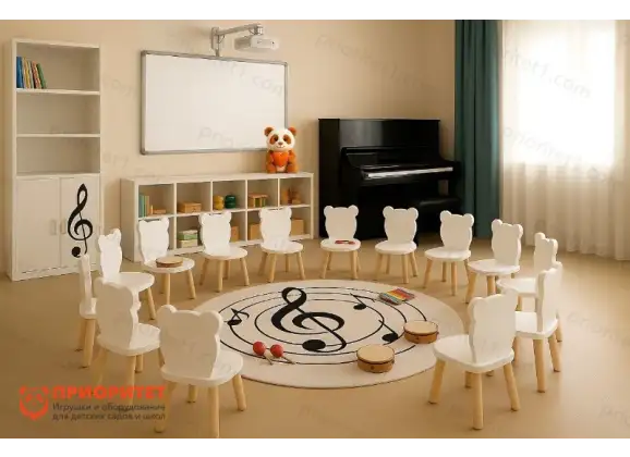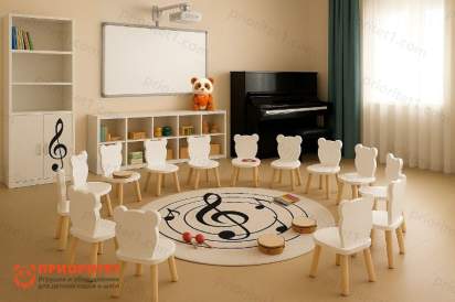 Готовое решение для оснащения музыкального зала в детском саду и школе. Комплект полностью соответствует требованиям приказа Минпросвещения №1057, СанПиН и ФГОС. Оснащение подобрано так, чтобы создать безопасную, функциональную и современную образовательную среду для музыкальных занятий.