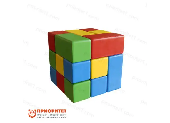 - Представляет собой комплект цветных деталей. Из-за большого размера держать кубики нужно обеими руками, но они имеют легкий вес и приятную текстуру.