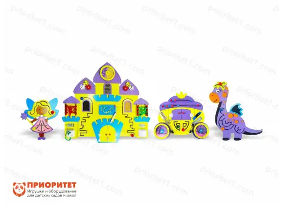 - Набор помогает развивать фантазию малышей. Они могут самостоятельно придумать собственную сказку с главными действующими лицами – персонажами, в виде которых выполнены бизиборды. Разыгрывая сказку, дети также могут наглядно показывать разные действия: открывание дверей, движение колес и многие другие, на которые хватит воображения.