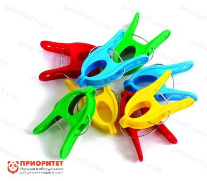 В состав набора входят прищепки увеличенного размера 4 цветов (красный, желтый, зеленый, синий). Они изготовлены из мягкого пластика и могут использоваться как для проведения занятий (на развитие мелкой моторики или изучение цвета), так и для украшения интерьера комнаты.