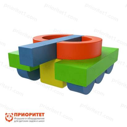 Мягкие модули соединяются между собой и образуют форму танка. Игровой комплекс изготовлен из безопасных материалов, которые не вызывают аллергических реакций, не источают неприятных запахов и устойчивы к повреждениям. Внешний вид модулей сохранится на протяжении долгих лет и будет радовать малышей из поколения в поколение. Поролоновый наполнитель обеспечивает безопасность детей во время игры и исключает возникновение травм и ушибов. Винилискожа, которая является оболочкой модулей, выдерживает большие нагрузки и приятна на ощупь. Оборудование, представленное в виде танка, привлекает детское внимание и помогает развивать фантазию. Набор предназначен для игр в дошкольных учреждениях, центрах развития, коррекции и реабилитации.