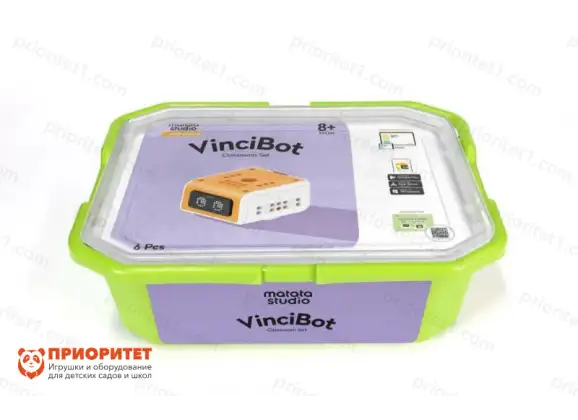Образовательный набор VinciBot Classroom Set предназначен для обучения программированию и робототехнике с 8 лет. В его основе лежит робот, который можно управлять дистанционно с помощью пульта или который работает автономно по загруженной программе. Программирование выполняется в программном обеспечении на языке Scratch, с возможностью перехода на язык Python.