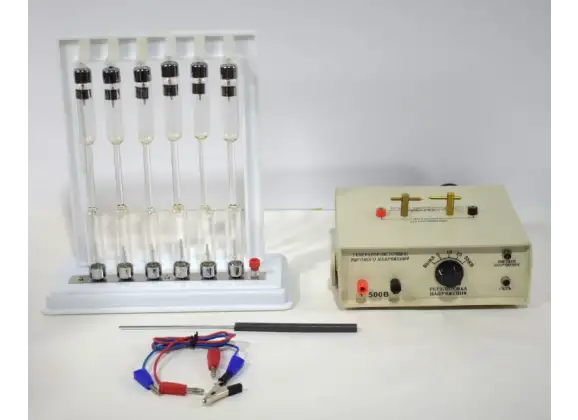 - 6 стеклянных спектральных трубок с электродами (длина каждой — 22 см), заполненных инертными газами: неон (Ne), гелий (He), аргон (Ar), водород (H₂), ртуть (Hg), азот (N₂).
