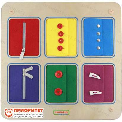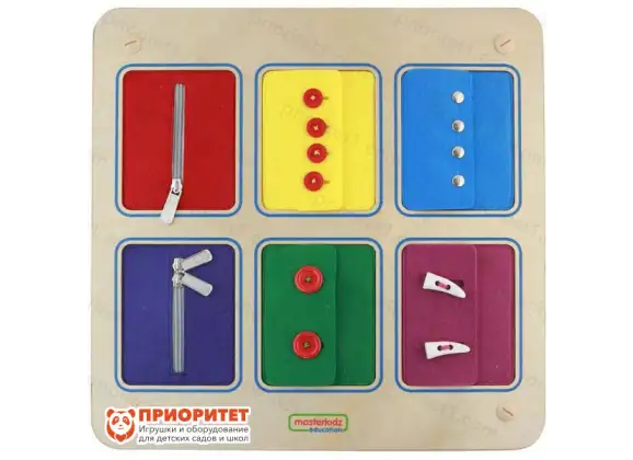 Панель «Ловкость рук №2» – это обучающая игрушка, предназначенная для развития необходимых навыков у детей. Представляет собой большую панель с кармашками на разных застежках. Цель детей – открыть все застежки и достать спрятанные педагогом предметы.