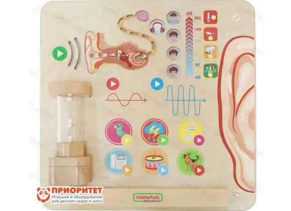 Панель «Познакомься со звуком» – это уникальное оборудование, предназначенное для развития слухового восприятия ребенка. Представляет собой панель с интерактивным набором звуков. Ребята могут нажимать на поверхность панели и изучать звуки различной высоты и громкости.