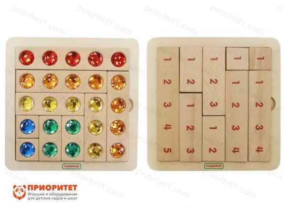 Деревянная панель из березы со счетными блоками из бука, украшенными цветными акриловыми камнями. Данное учебное пособие предназначено для изучения цветов, а также навыков счета в пределах пяти. С помощью блоков можно составлять примеры, которые малыш будет с интересом выполнять. Можно использовать и дома, и в образовательных учреждениях.