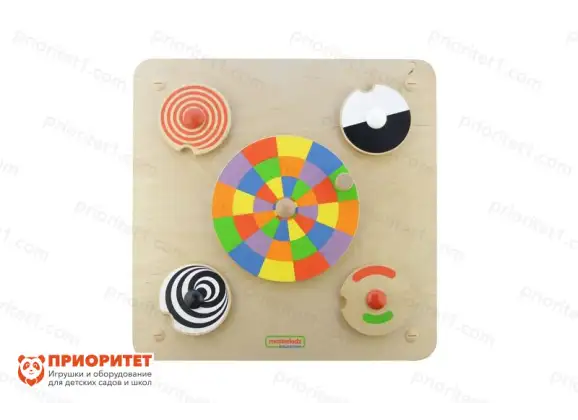 Панель «Цветные колеса» – это сенсорная игрушка, предназначенная для развития мелкой моторики ребенка, а также для расслабления. Представляет собой панель с несколькими подвижными элементами, которые можно взять за ручку и крутить, наблюдая за изменением цветовой гаммы.