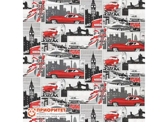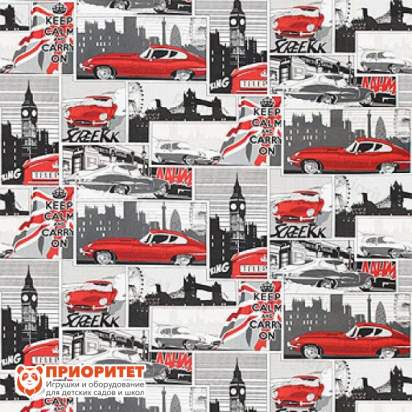 На чехле изображен красный автомобиль марки «Ягуар» на фоне достопримечательностей Лондона. Такой пуфик дополнит интерьер в английском стиле.