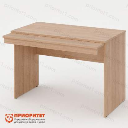 Рабочее место для педагога из серии «Медовая» — функциональный стол для воспитателя/педагога в детском саду, ДОУ или школе. Модель с раскладывающимся столиком увеличивает рабочую поверхность с 600 до 800 мм, что удобно для подготовки занятий, работы с документацией и раздаточными материалами.