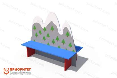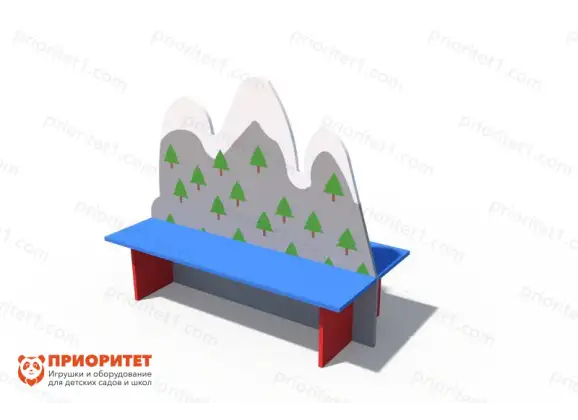 Скамейка в виде альпийских гор станет достойным украшением любой детской площадки. Конструкция окрашена в приятые цветовые оттенки. Интересная форма быстро привлечет внимание ребят и станет их любимым местом. Для удобства и в целях расширения посадочных мест сиденья расположены по обеим сторонам. Дети могут представлять себя смелыми покорителями вершин, путешествовать с друзьями по горам и изучать особенности альпинизма.