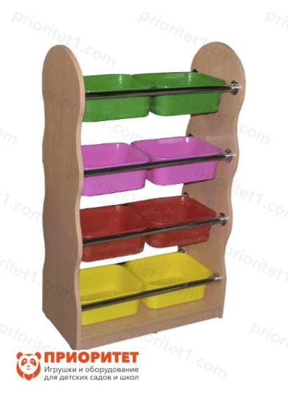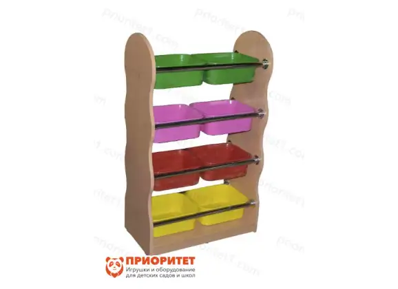 - Стеллаж подходит для детских учреждений или домашнего использования. Вмещает набор игрушек для небольшой группы детей.