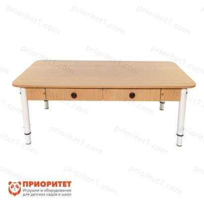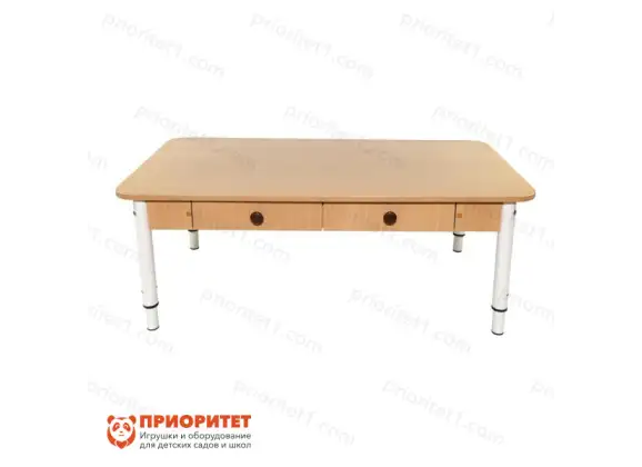 - Стол подходит для использования как в учебных учреждениях, так и дома. Вмещает 1 или 2 детей. Имеет средний размер.