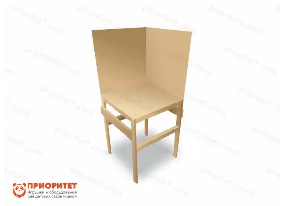 Стол выполнен их натурального дерева с высокими ножками, устойчивый, прочный. Поверхность хорошо обработана, гладкая, натурального естественного, не отвлекающего цвета. На крышке в виде двух перпендикулярных плоскостей установлены бортики-планшеты, который при необходимости можно драпировать. Планшеты съемные, это позволяет: