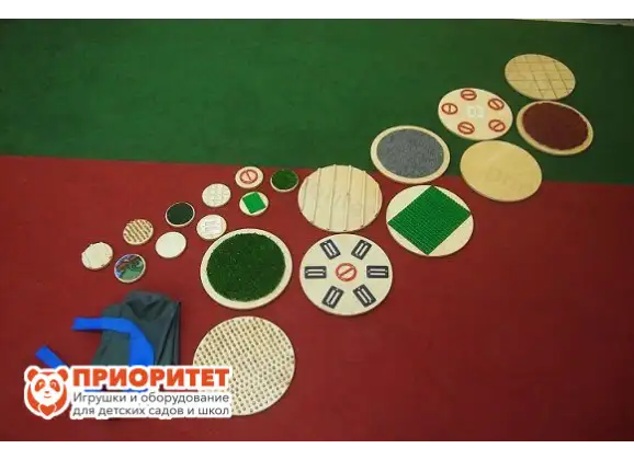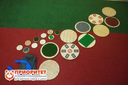 Тактильная дорожка «Тактильные диски» - это развивающая цепочка из круглых элементов, которые отличаются по текстуре и материалу. Ходить по такой дорожке следует чистыми босыми ногами, так как идет активное воздействие именно на стопу. В процессе занятий происходит: развитие координации в пространстве, профилактика плоскостопия, тренируется внимательность и сенсорный опыт малышей. Рецепторы стопы ощущают на себе различные виды материалов, что положительно сказывается на самочувствии малышей.
