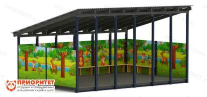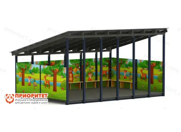 Теневой навес спасет малышей от резкой непогоды или жаркого солнца, создав отличные условия для совместного времяпрепровождения внутри. Металлическая крыша и прочные стенки не дадут осадкам или сильному ветру испортить игру. Внутри малыши могут отдохнуть на скамейках или поиграть в активные игры – расширенное пространство навеса позволяет не ограничивать свое движение.