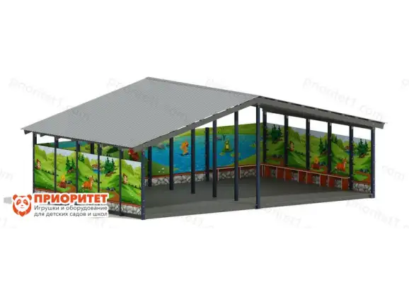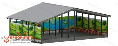 Теневой навес «В гостях у сказки» представляет собой разновидность веранды, где можно организовать игровое пространство для детей. Предназначается для детей-дошкольников. Рекомендуется к установке в дошкольных учреждениях образования.