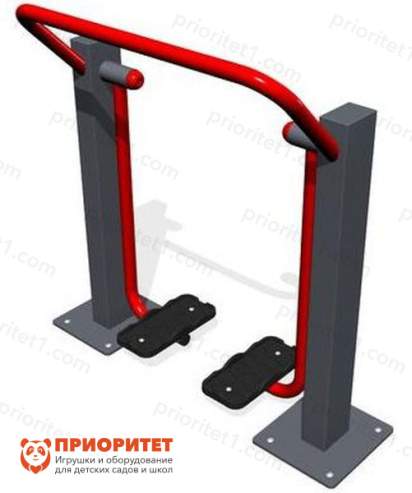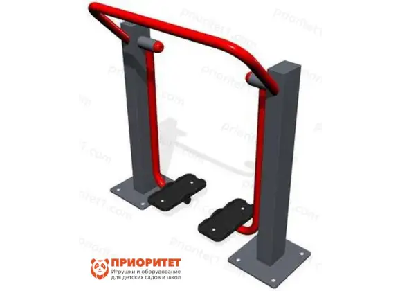 Тренажер выполнен в виде двух опорных стоек, соединенных друг с другом изогнутой круглой трубой, выполняющей функцию поручня. Стойки имеют подвесы с ногоступами, предназначенными для постановки ног занимающегося и развитию мышц нижних конечностей, координации и выносливости. Тренажер рассчитан на одного взрослого человека или ребенка-подростка. Оборудование устанавливается на специально подготовленный фундамент спортивной площадки с помощью анкерных болтов.