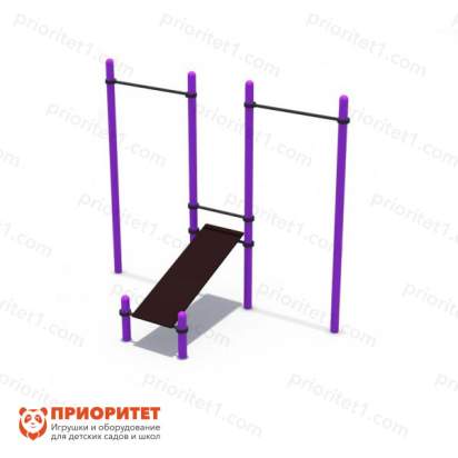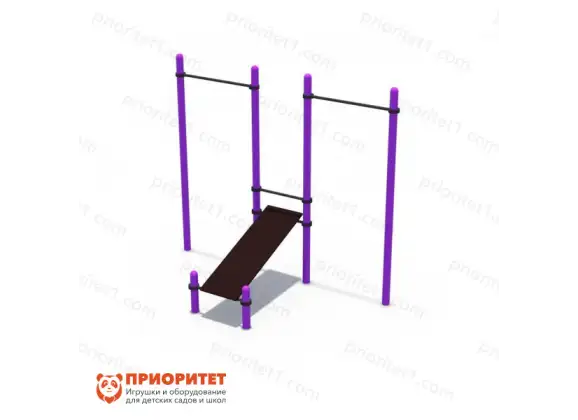 Универсальный спортивный снаряд из турников и скамьи для пресса отлично подойдет для любой детской или спортивной площадки и поможет приобщить малышей к дисциплине и спортивной культуре. Снаряд способствует развитию всех групп мышц, улучшает выносливость, силу, а также влияет на развитие коммуникативных навыков. Прочная антивандальная конструкция выдерживает любые нагрузки и позволяет заниматься как малышам, так и взрослым, а отсутствие острых углов и выпирающих элементов фурнитуры исключает риск травмирования.